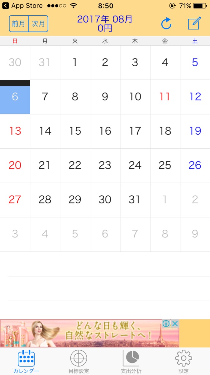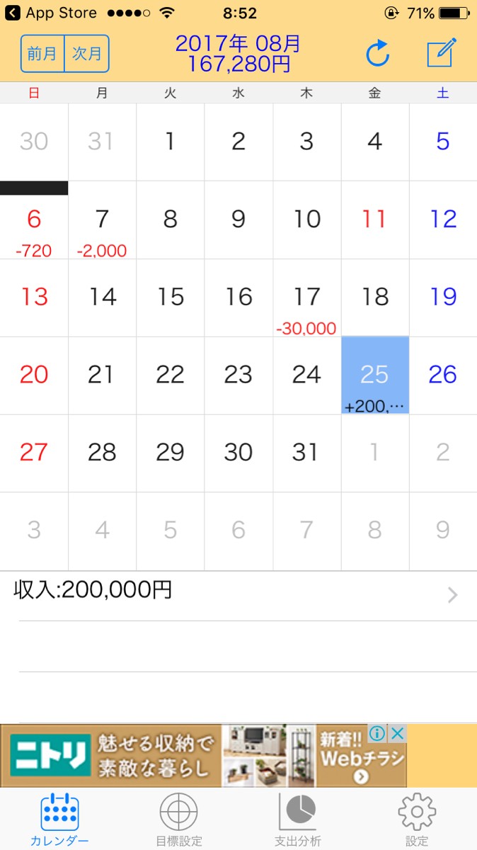 カレンダーを使うことで堅苦しくない印象です。支出も一目で確認可能できます。