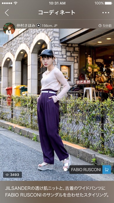 パンツが気に入って自分も買いたくなってしまったので、アイテムをタップしてみると、同じパンツを履いている他のコーディネート写真が