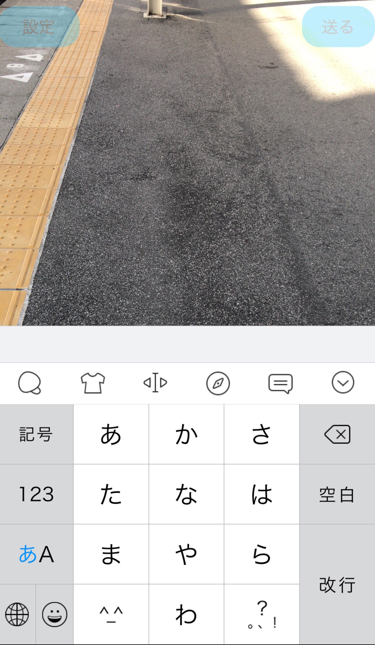 文字を打っていくと、このように、カメラ画面の上に文字を打つことができました!歩きながらスマホでも字を打っても、自分の視界がくっきり見えます。これならスマホ画面に夢中になっても、人にぶつかる、転倒する、などの危険を回避できそうです!