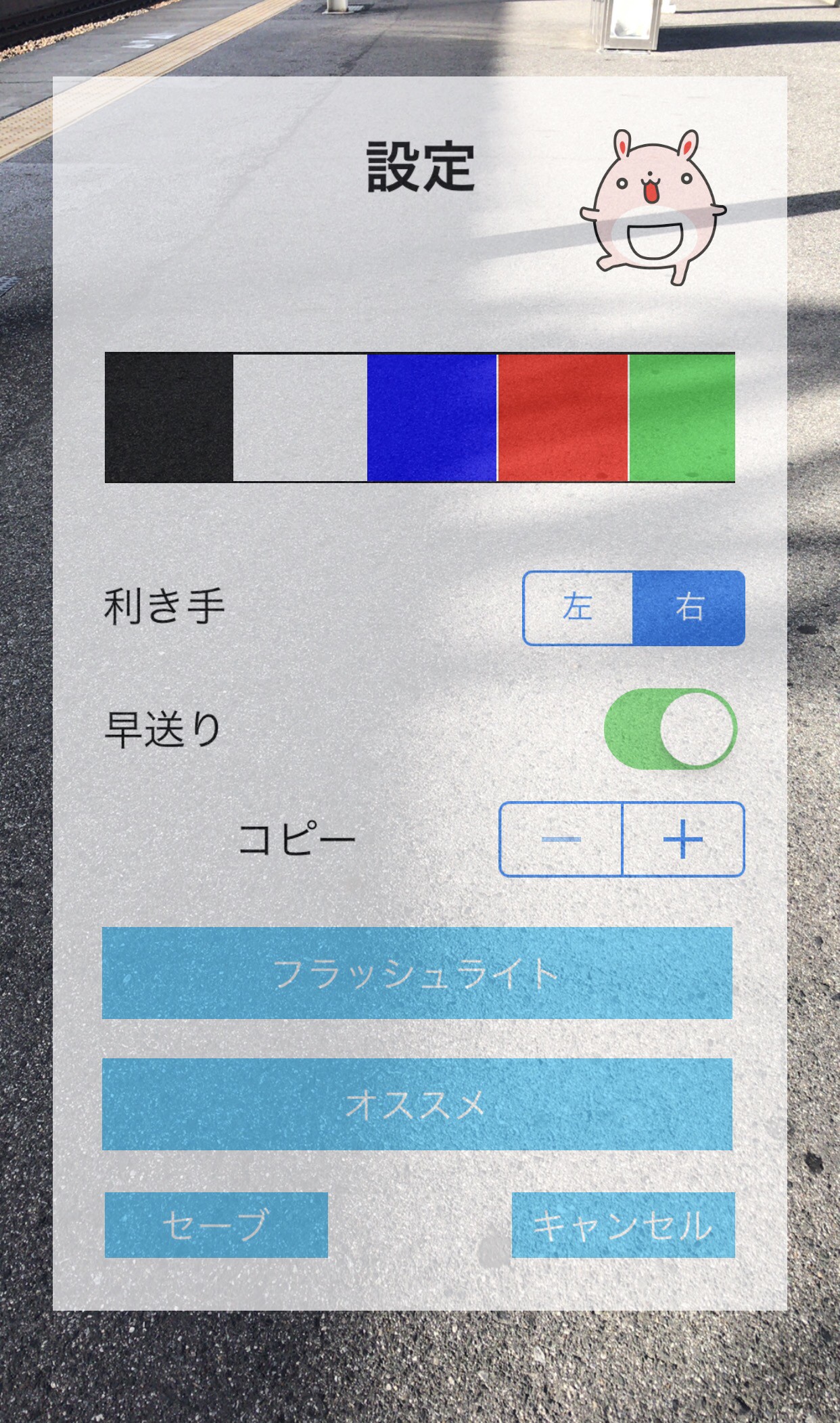 歩いている自分の視界が明るい場所だったり、暗い場所、色の奇抜な場所も歩くこともありますよね。そんなときにこのアプリ使おうとすると、当然、視界の風景と同じ風景がスマホ画面に映し出されます。スマホ画面の風景に埋もれて、打っている文字が見えない!そんなときでも大丈夫なんです。このアプリでは、「設定」で打つ文字の色を変更することができます。例えば、明るい場所を歩いているときは「黒」、暗い場所を歩いているときは「白」など、場所によって文字の色を使い分けることが可能です!