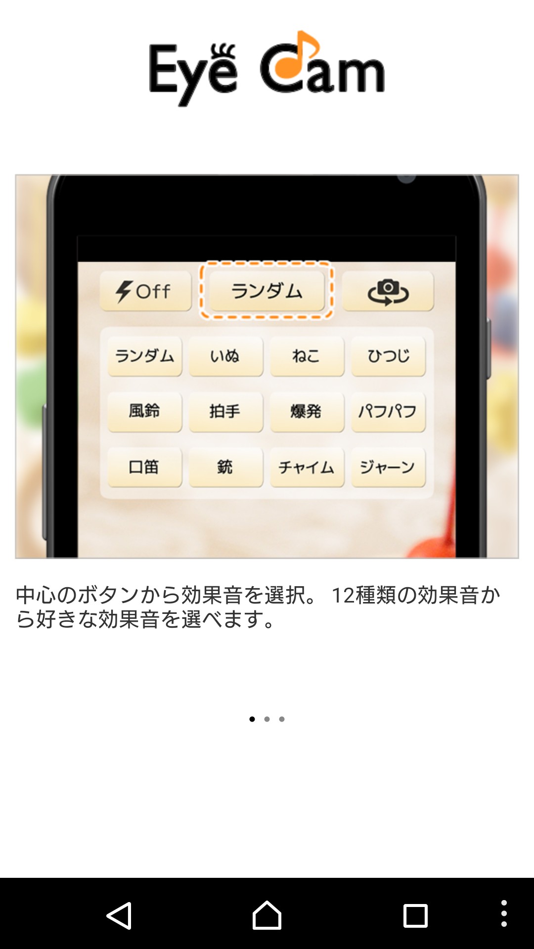 「EyeCam」ではシャッターボタンを押している間、さまざまな効果音を鳴らしてくれます。