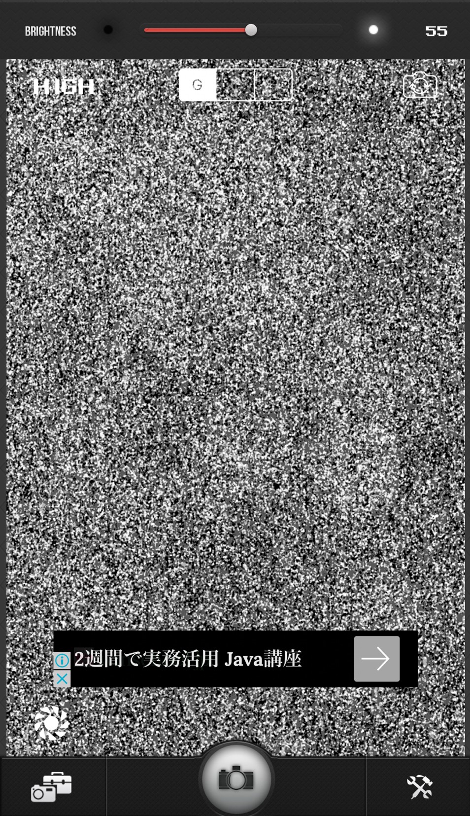 このアプリでは、通常のスマホカメラのように明るさの調節をすることができます。画面上部分の「BRIGHTNESS」と書かれた横のバーを左右に動かすと、明るさの調節ができます。