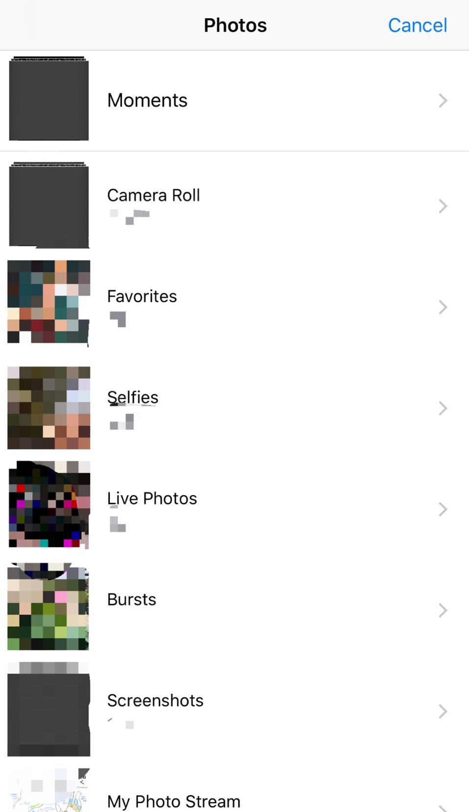 「道具箱とペンのアイコン」をタップすると、スマホに保存してある画像のフォルダが表示されます。このフォルダ一覧からフォルダを選び、加工したい写真を選んでタップします。