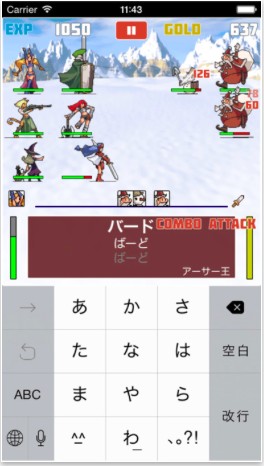 ゲームではフリック入力でのバトルの他、Bluetoothキーボードを使っての英語入力モードも搭載されています。素早くタイピングするとコンボゲージが上昇していき、満タンになると連続攻撃を繰り出すことが可能。計算問題などが出題されることもあり、単調なバトルになることなく楽しむことができるでしょう。