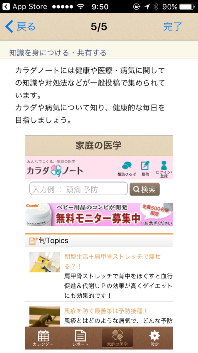 5、カレンダーでの通院管理や医療費の管理メニューが使えるようになります。