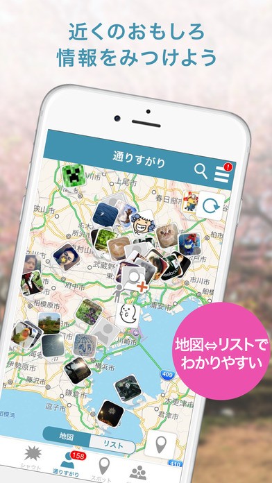 ・「スポット」機能で近所のお店や穴場情報をチェックしたり、自分のお気に入りのスポット情報を発信することが可能