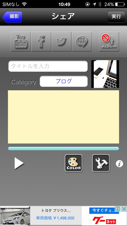 「夜撮ムービー Lite」で撮影した動画はYouTubeやFacebook などのSNSへの動画投稿を簡単に実行することができます。 また、Twitter、Mixi へも動画のリンクを投稿することがでます。 綺麗な夜景や景色動画を1分間のショートムービーにしてSNSに投稿すればみんなにも自慢できちゃいます。SNSへの投稿のやり方ですが、動画を撮影し、終了すると投稿画面に変わります。画面上部にYouTube・Facebook ・Twitter・Mixiのボタンがあるので投稿したいSNSのアイコンを選びましょう。タイトルやコメントを入力して左上にある「実行」のボタンをタップすればこれで完了です。みんなでどんどんシェアしちゃいましょう。
