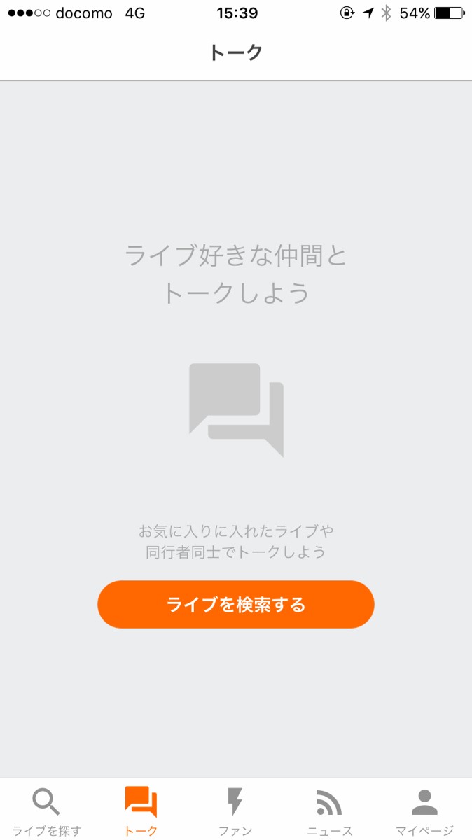 5.ライブ好きの仲間たちとトークをしたいときは画面下部の「トーク」をタップ