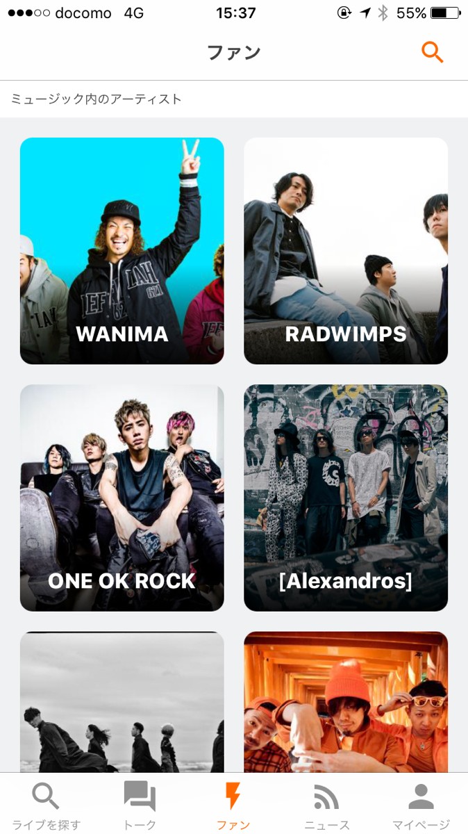 6.アーティストごとのコミュニティに参加したいときは「ファン」をタップ