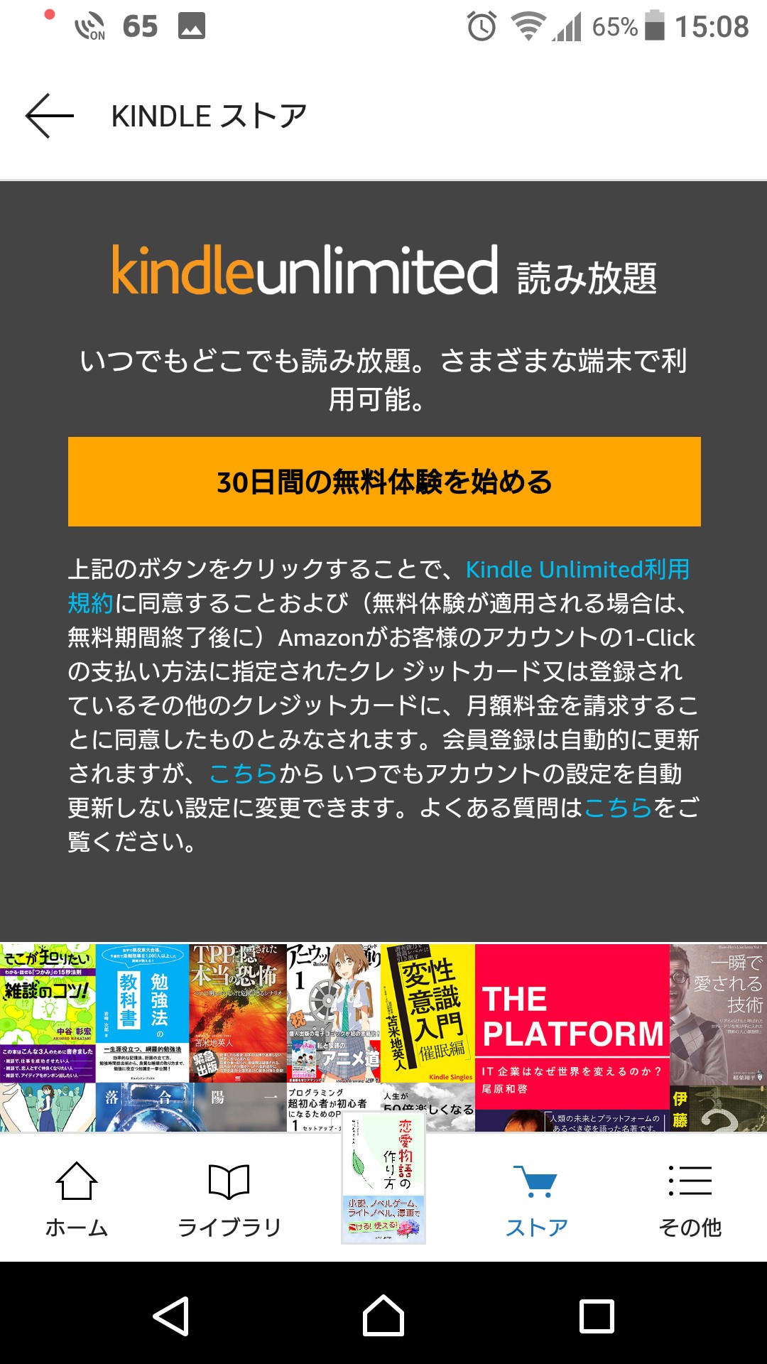 kindle unlimitedは登録後30日間は無料で使えます。お試し感覚でまずは登録して、自分の使いたいスタイルにマッチするか、自分の読みたいジャンルが充実しているかなどを確かめてみるといいでしょう。