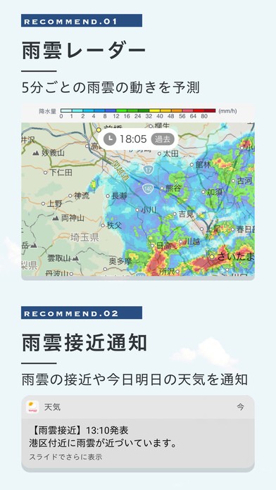 天気予報や雨雲レーダー、台風情報などすぐに見たい情報をワンタッチで見ることができます。さらに、ウィジェット機能を利用すればいちいちアプリを起動することなく簡単に天気予報を確認することができます。