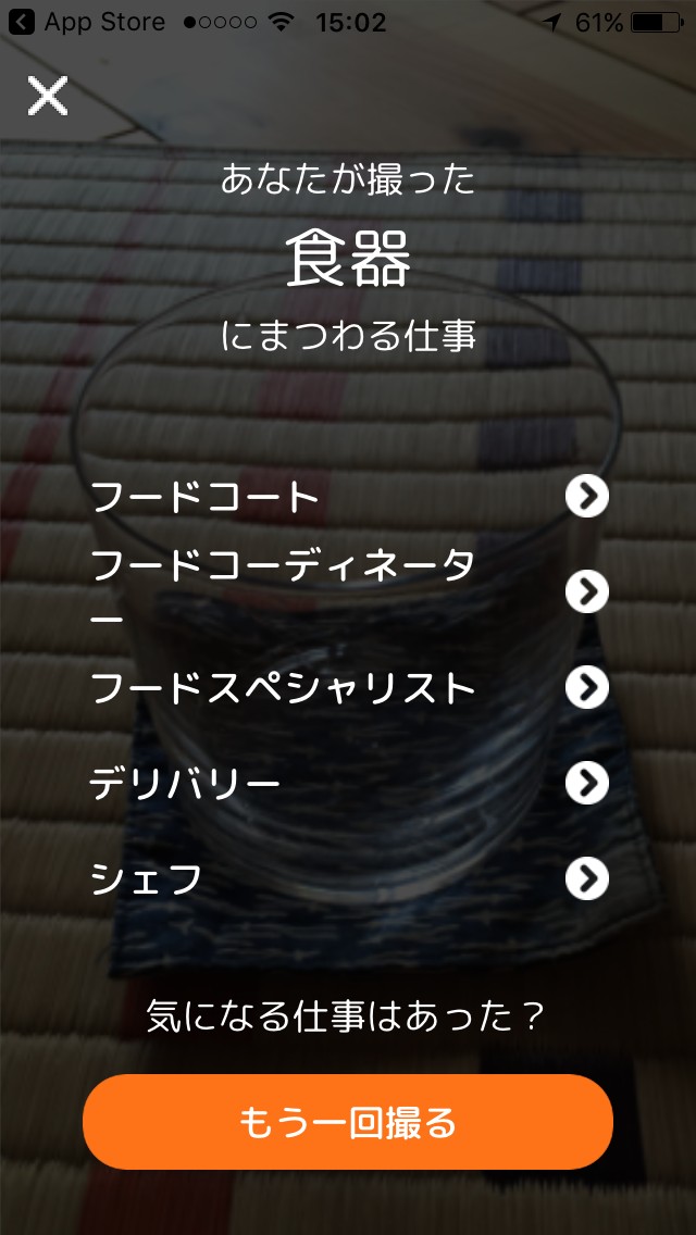 ・自分が撮った写真に関連する職業を、300種類以上の候補から探してくれる