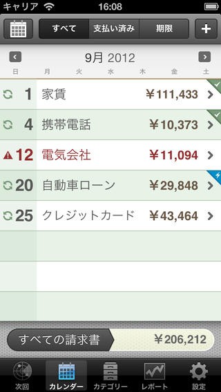 請求書の支払日を管理できるアプリ「BillMinder 3」のおすすめポイントは、