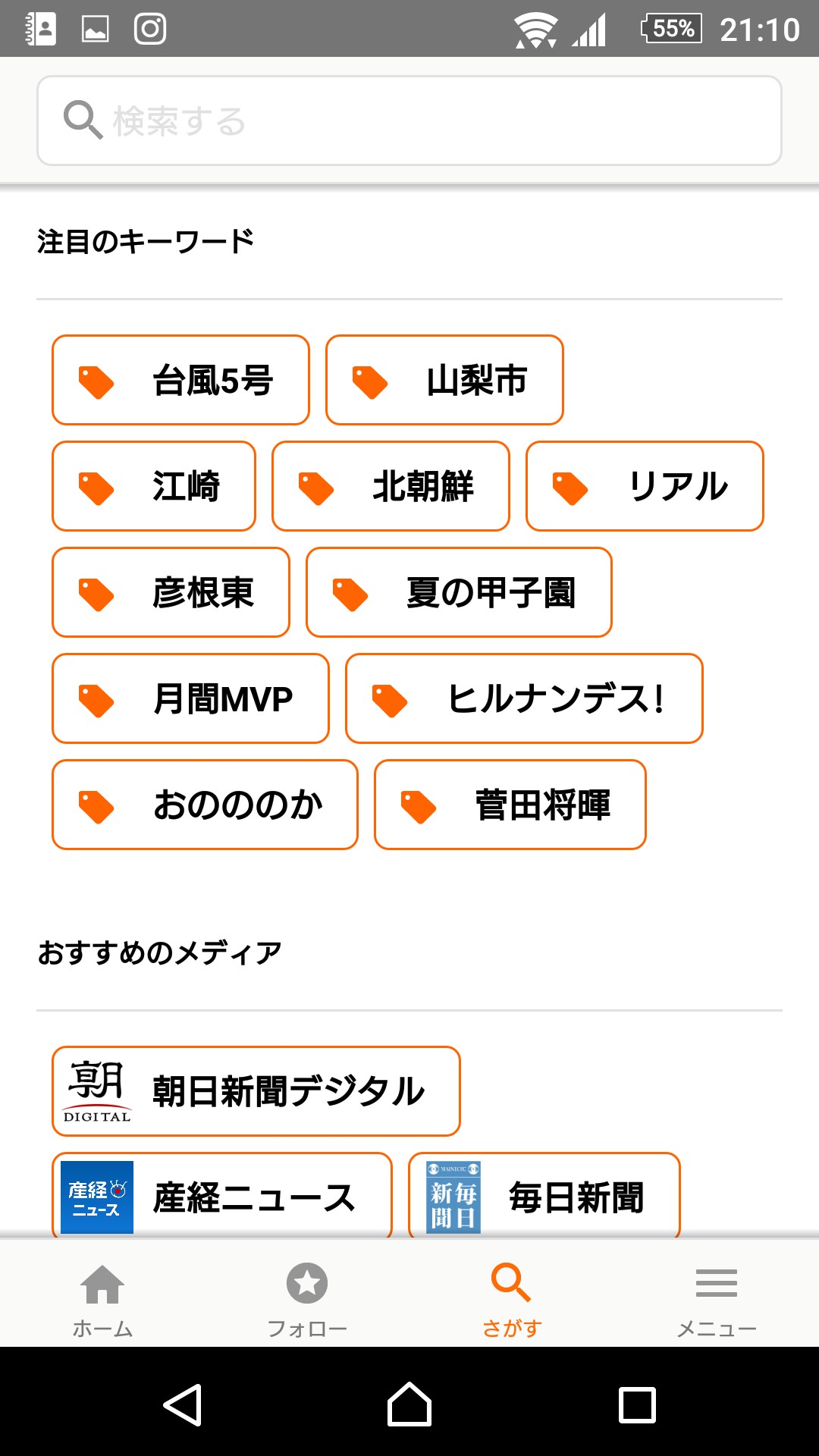 まず1つ目は自分の興味があるキーワードを設定して、フォローできることです。インターネット社会の現代では少し情報収集をサボると、多くのニュースが毎日アップされ続けているので欲しい情報を見逃しやすく再度追い続けるにも時間がかかります。そんなときフォロー追加設定しておけば見逃す心配がありません。