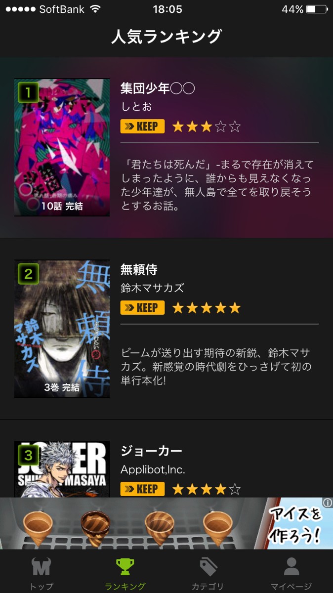 人気の漫画がランキングに表示されているのですぐ読むことができます!何を読もうか迷う方はまずランキングから探すのもおすすめです。