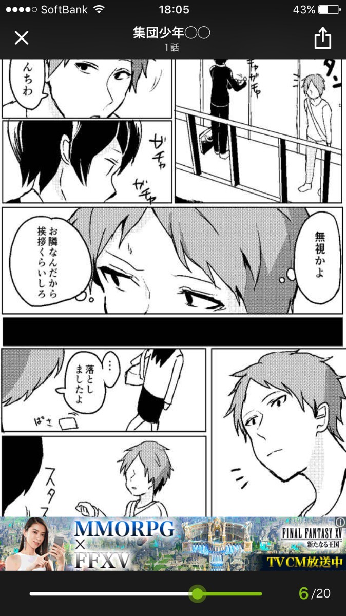 7、画面を指で左から右にスワイプして読み進めていく