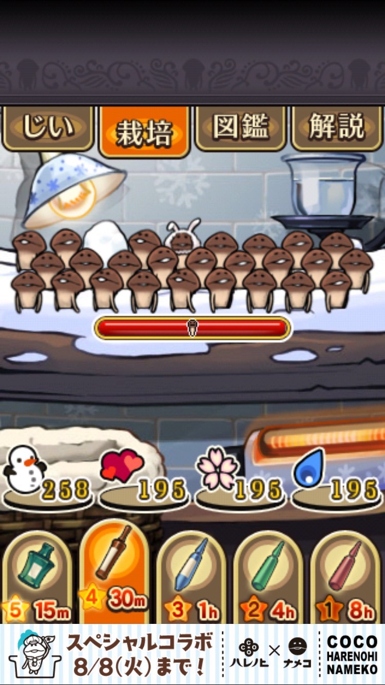 ・ポイントを貯めて育成設備を充実させると、収穫できるなめこの種類が増えていきます