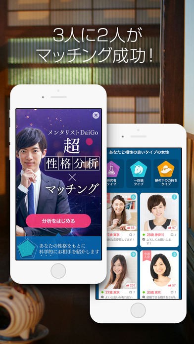 - 「運命以上の恋愛婚活サービス メンタリストDaiGo監修with」で三人に二人がマッチング成功の秀逸恋活・婚活!