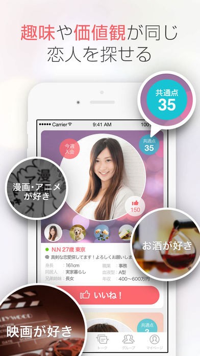 ・価値観の合う相手が数名表示されるので、好みの相手探し