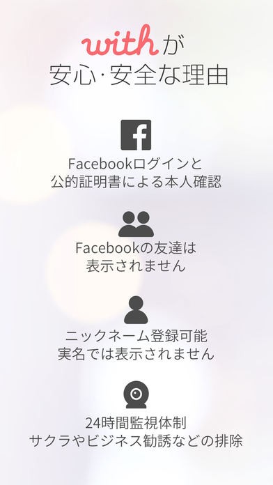など、魅力たっぷりの「運命以上の恋愛婚活サービス メンタリストDaiGo監修with」のおすすめポイントです。メンタリストDaiGoがあなたの性格を分析して、あなた自身が今まで気付かなかった性格や恋愛傾向を教えてくれます。さらに、しっかり恋愛のアドバイスもしてくれるので今後の出会いに大変役に立つでしょう。実名登録のFacebookを介してアプリを利用できるので安全面でも納得、趣味の合う相手を厳選して紹介してくれるので、好きなお酒やアニメの話など、尽きることない趣味の話題に盛り上がるでしょう。特に趣味のない方も大丈夫、価値観が合う相手を「好みカード」で探しましょう。
