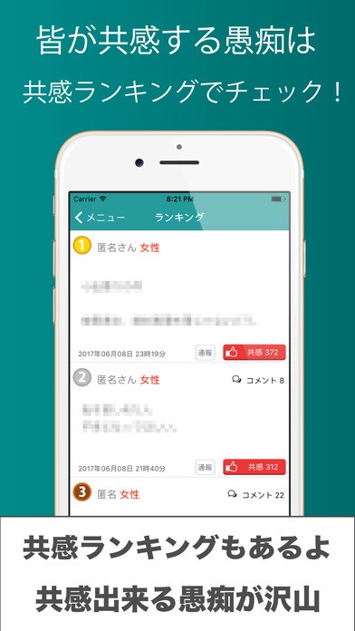 ・ニックネームや匿名で愚痴を投稿できる