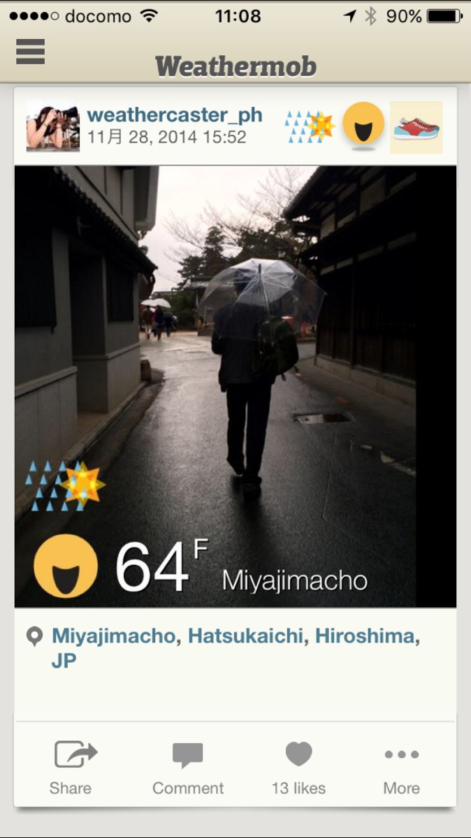 お天気アプリって最近ではたくさんの種類のアプリがありますよね。でも、本日紹介する「Weathermob」はほかのお天気アプリとひと味違ったアプリです。毎日の天気の情報をGETできるだけではなく、世界中の人と天気を通して気軽に共有できるという新しいスタイル。世界の天気ってどうなの?日本の天気の事を世界の人はどう感じてるの?など、知ることができるシンプルで使いやすく素敵なアプリなのです。是非参考にしてみてくださいね。