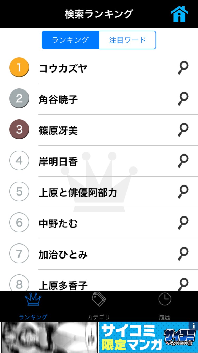 検索ランキングがあるので、いまどのようなキーワードが多く検索されているのか一目で分かります。