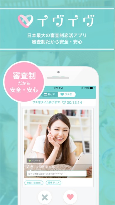 「イヴイヴ ~ 日本最大の完全審査制相席・恋活アプリ!」は、審査ありの安心して出会いを探せるアプリ!