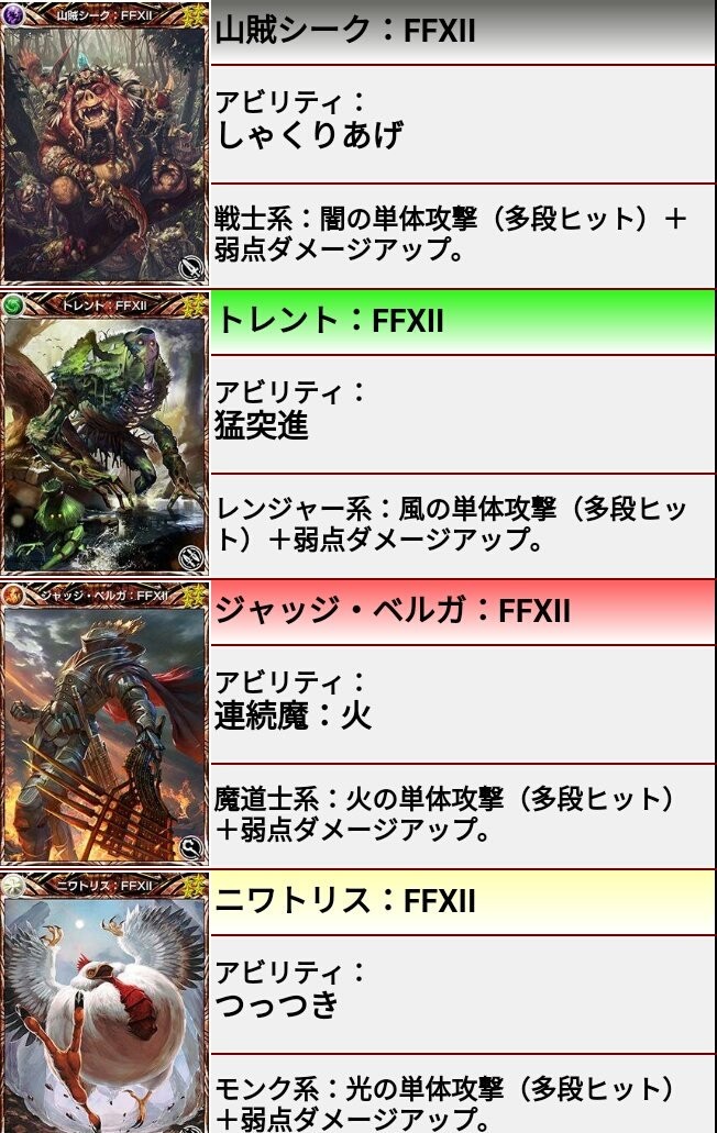 「FFXII:光の空賊」に登場する敵を倒すことで先日登場した「FFXIIコラボカード」の「アビリティ」強化ができます。