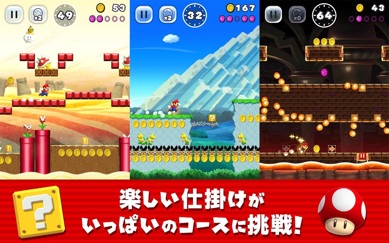 スーパーマリオといえば昔懐かしい横スクロール型アクションゲーム!それがスマホにやってきました!
