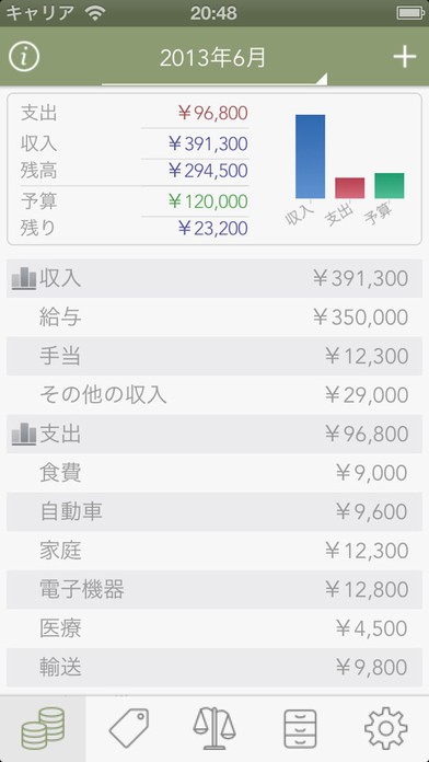 クレジットカードや複数の口座の管理などはできませんが、それは他の財産管理がメインのアプリに任せ、「家計簿 moneyDIET³」は日々の家計の把握に活用するのがおすすめです。