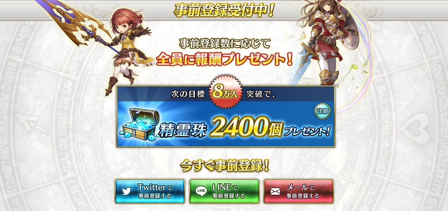 ゲーム内で使用する「精霊珠」を2400個入手することができるので、この機会に登録してみてはいかがでしょうか。