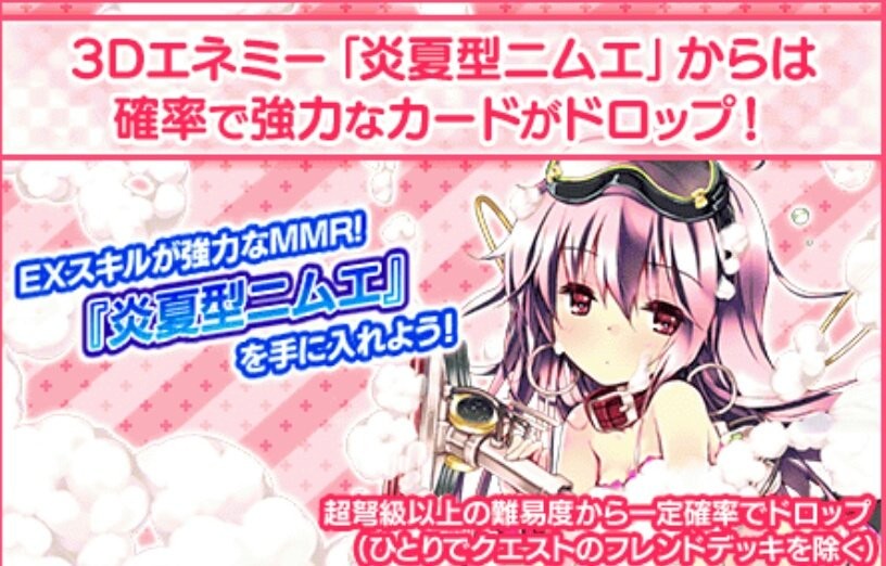 EXスキルが強力な「MMRの炎夏型ニムエ」を手にいれよう、クエスト達成時確率でドロップします。