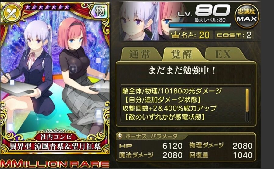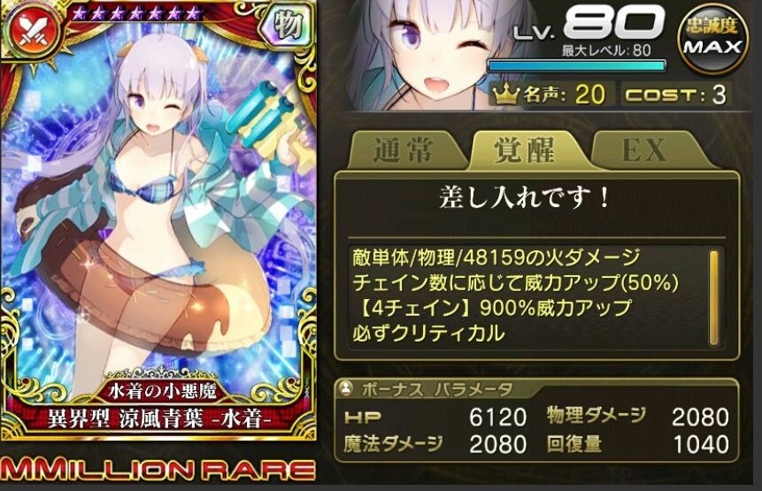 上記二種類のガチャから出現する「異界型 涼風青葉&望月紅葉」「異界型涼風青葉ー水着ー」はとても強力なキャラクターなので、この機会に手に入れましょう。