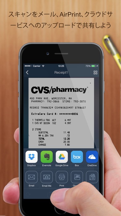 「Tiny Scanner+-PDF scanner to scan document, receipt&fax」はカメラ機能を使って、何でもスキャンできるアプリです。書類や領収書、写真などが何でもスマホでスキャンしてイメージファイルやPDFファイルにできるので、スマホが持ち歩ける小さなスキャナーに変身します。スキャンしたものは、メールで送ったり、Airprintで印刷したり、クラウドサービスに共有するのも簡単です。「Tiny Scanner+-PDF scanner」は高速できれいに保存でき、整理しやすく探しやすいので、ペーパーレス化に貢献してくれます。
