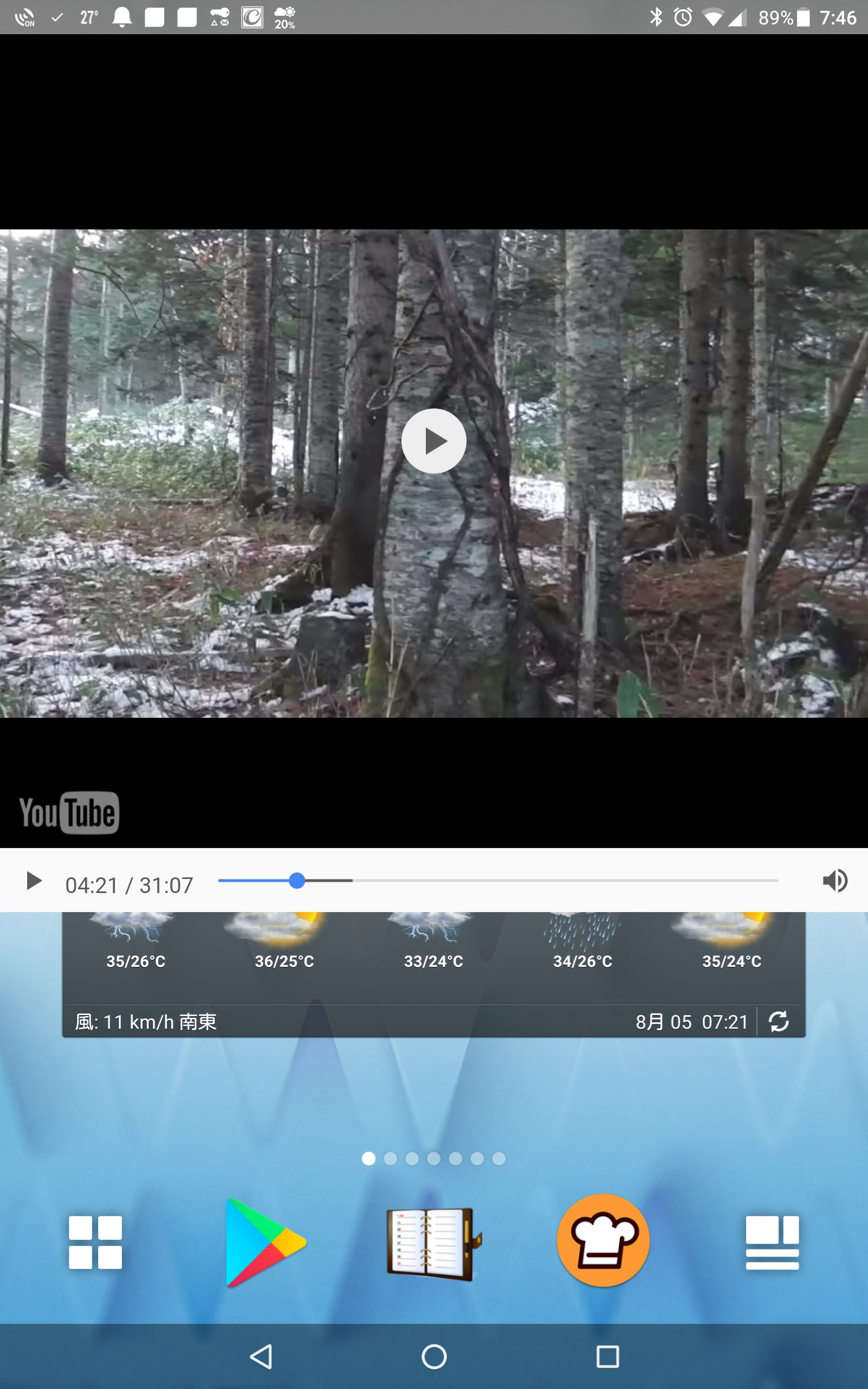 タブレットの縦画面ですと横幅いっぱいに youtube が再生され画面下部では google 検索を行ったりその他の作業をすることができます。