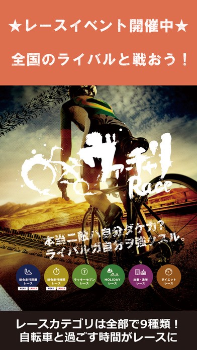 ◎自転車が好きで、ランキングやレースの目標が欲しい人・・・全国の自転車好きな仲間がライバルです。