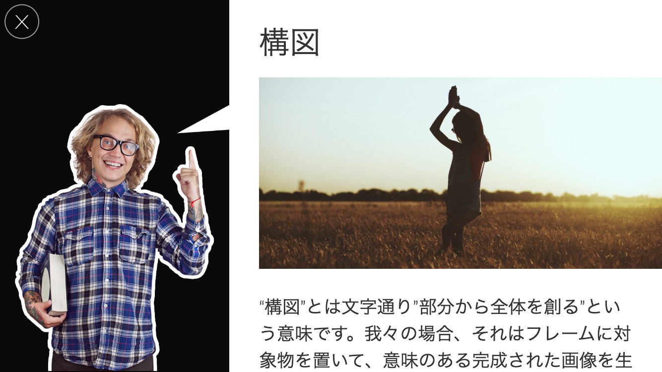 スポーツでも上手くなる為には、道具の知識を持ち、理解を深めることが重要ですよね。写真もそうです。良い写真を撮る為には、その道具であるカメラのことを深く理解することが重要です。カメラのことを何も知らない人と、正しい知識を持っている人とでは、同じ風景や人物、料理を写しても、全く違った写真になってしまいます。InstagramやFacebook等のSNSにより、他の人と写真を共有する機会が多くなった今日この頃、カメラについて学習しませんか?そんな時に、役立つのが、この「The Great Photo App」です。手軽にスマホで、カメラの基礎が学べます。