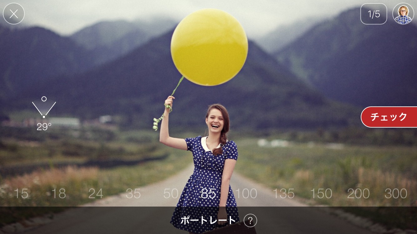 人が写真を見る時に、本能的に焦点を当てる箇所は、だいたい決まっているのです。この点に、例えば、撮影する人物の顔や、風景写真のランドマーク、更には料理のメインディッシュなどを置くことで、ぐっと写真が印象的になるのです。「The Great Photo App」では、水平レベル、写真撮影の黄金比である三分割法、フレームの縁部など、写真撮影に重要な構図で注意すべき事項を、クイズ形式で学べます。サンプル画像に対して、スマホの角度や位置を変えながら、最適な構図に合わせましょう。最適な構図にあるまで次に進めませんので、何度でも繰り返し構図を変えながら、最適な構図に合わせてください。構図の考え方が、理解できると思います。