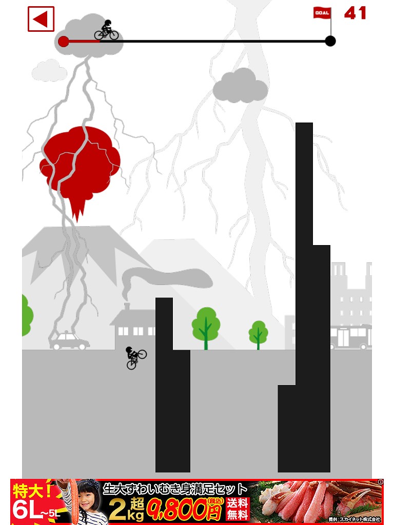 自転車に乗った棒人間が、谷間を飛び越え障害物を避けてゴールをひたすらに目指すゲームです。最大四回までジャンプできるので上手く活用してください。ただジャンプをすればよいわけではありません。飛距離を考えながら飛ばないと谷底に落ちてしまいます。タイトル通り最初から歯ごたえのある難易度で、全100ステージ用意されています。しかも全てクリアしても終わりではなく、さらに難易度が激化した裏ステージもあります。ステージ数と難しさが相まって、かなりの時間暇つぶしとして役に立ってくれるでしょう。何度も挑戦してクリアしたときの達成感もひとしおです。