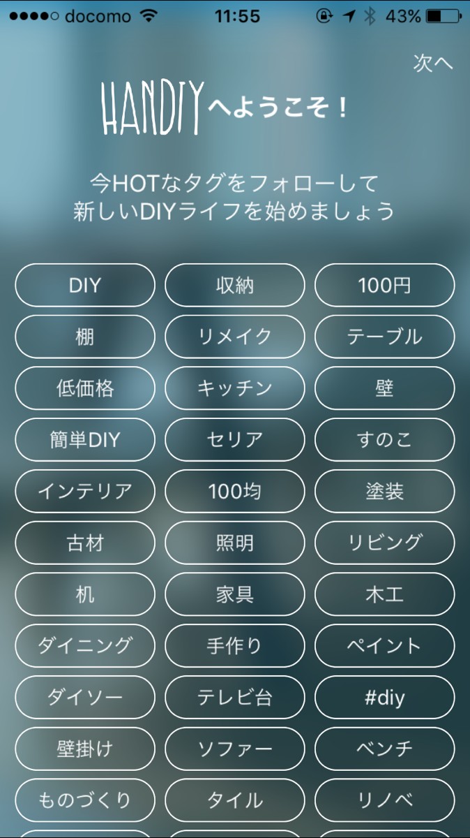 「DIY」や「100均」、「ダイニング」や「マイホーム」など数多くの言葉が並ぶので、自分の興味のあるタグを選んでいきましょう。ここで、フォローしたタグをつけて投稿される写真が自分のタイムラインに表示されます。