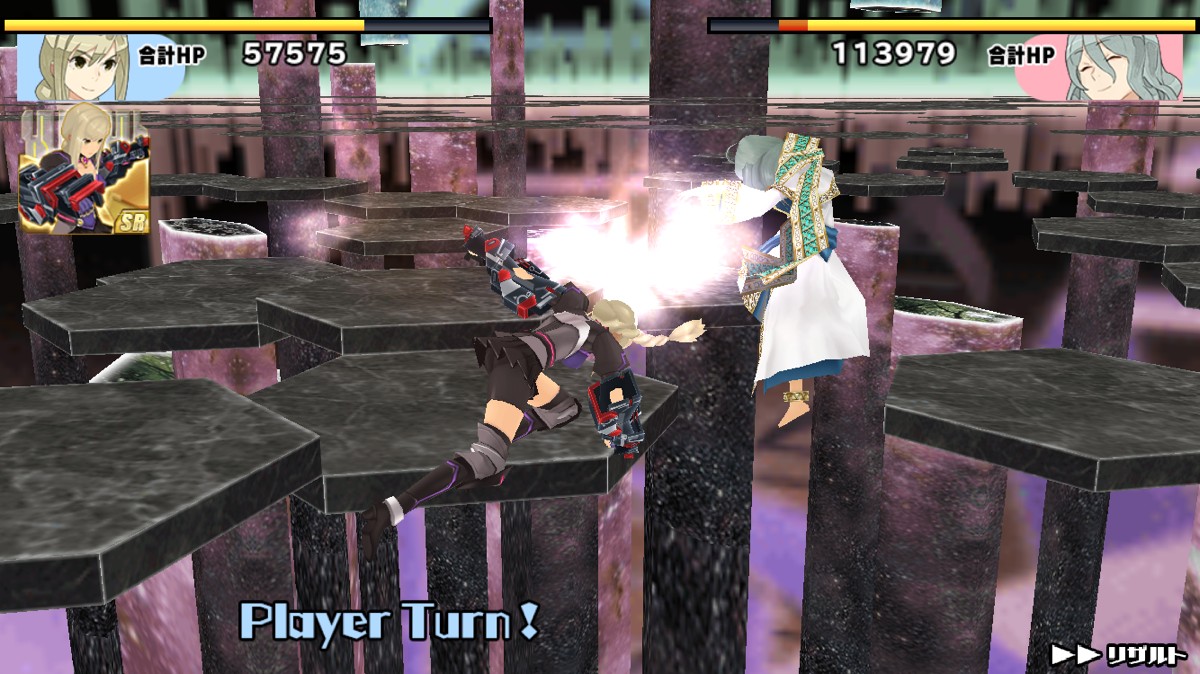 萌系のキャラクターがバトルする場合、アクションがとても可愛らしい魔術系が多いですよね。でも、このゲームのバトルは武器を使う本格的なバトルです。敵に攻撃が当たる時は、爆発したり煙がでたり迫力満点で楽しめます。