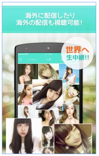 海外の人とコミュニケーションをとってみたいと思っている方、とりあえずライブ配信を試してみたいという方に向いているアプリです。