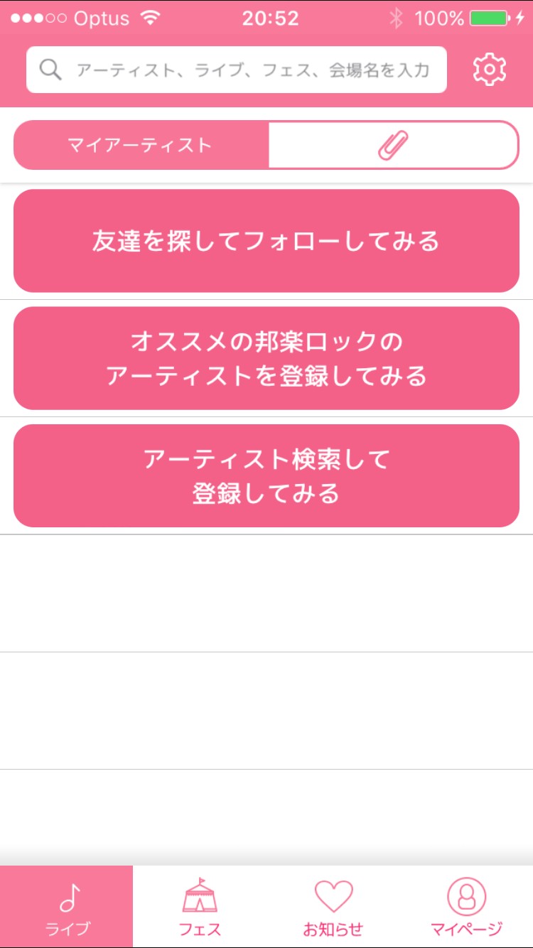 自分の好きな歌手やバンドを検索して登録することができます。登録しておくとライブや参加するフェスなどの情報が入ってくるので見逃しにくく、ファンにとっても嬉しいですよね。