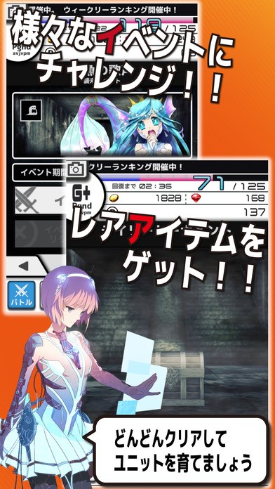 戦いの中で勝ち進むためには強力なユニットを結成する必要があります。モンスターをスカウトし、様々なスキルを覚えさせます。強力なスキルを獲得するためには、強い相手と戦い、「スキルの書」を入手して行くことが必要になります。あわせて、チューニング合成で、モンスターを強化・育成していきます。自分だけの強力なユニットを作り上げて、戦い抜きましょう。戦いの中に出現するダンジョン「バトルタワー」や対戦イベントに挑戦し、クリアすることによって、貴重なアイテムを集めることができます。