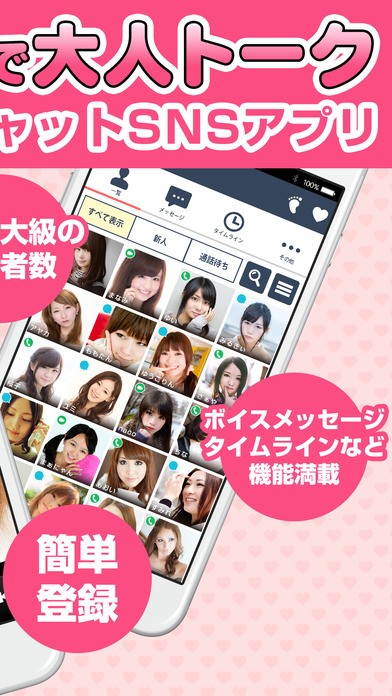 このアプリは、ビデオ、音声、テキストの3パターンのツールでチャットが利用できるコミュニケーションアプリです。ダウンロード後の会員登録も短時間で済むため、簡単に始めることができます。チャット機能の他に、タイムライン機能も用意されていて、気になる相手の投稿に気軽にコメントを残すこともできます。利用者の中には、素敵な出会いを求めている人だけでなく、空き時間にネット上の相手と雑談したいだけという人もいます。自分なりの使い方で気兼ねなく楽しむことができるのは嬉しいですよね。