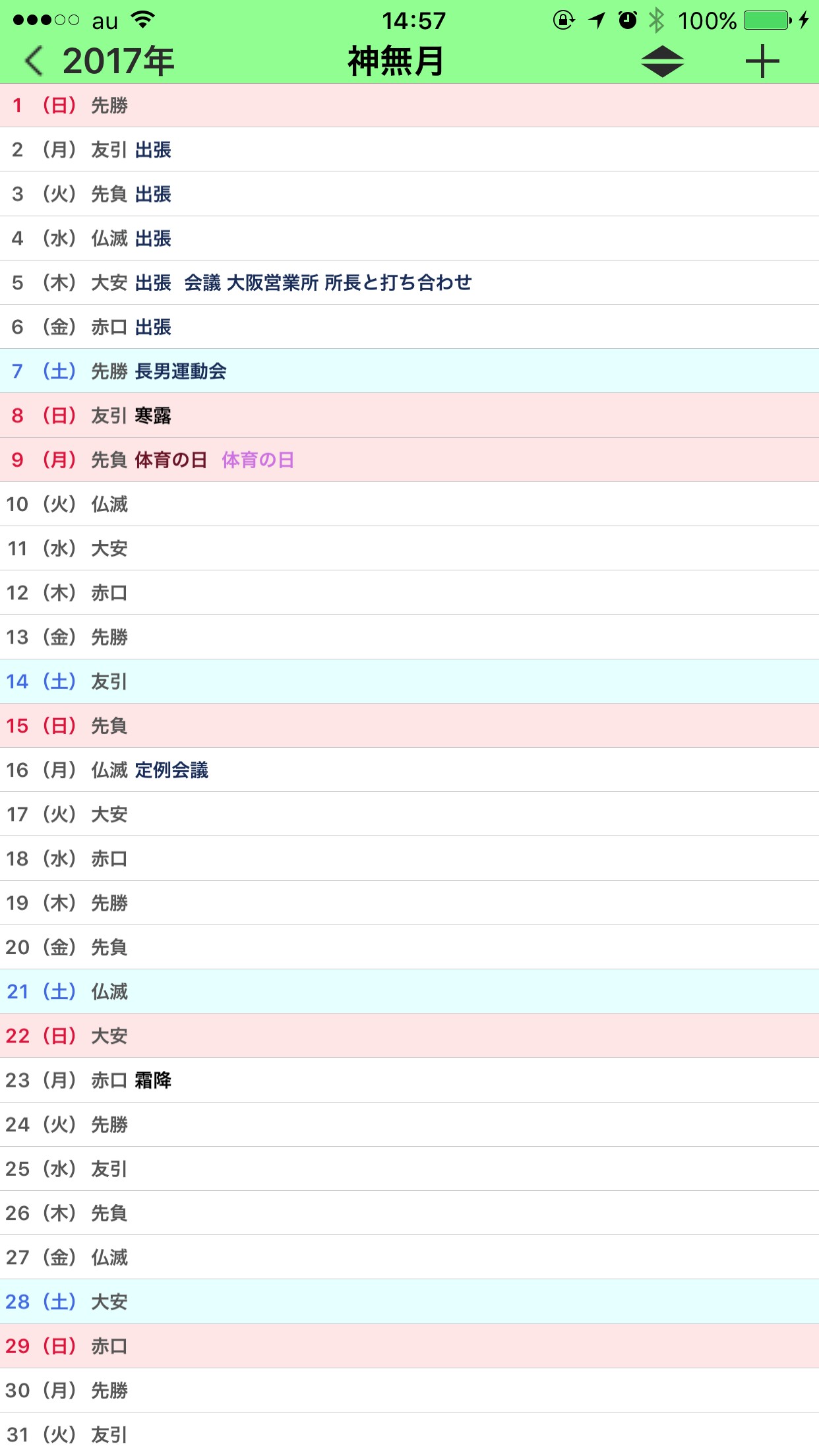 ・お仕事や知人とのおつきあい、慶事、弔事で日付がどの六曜なのかを重視する方にはそれに合わせたスケジュール管理ができます。