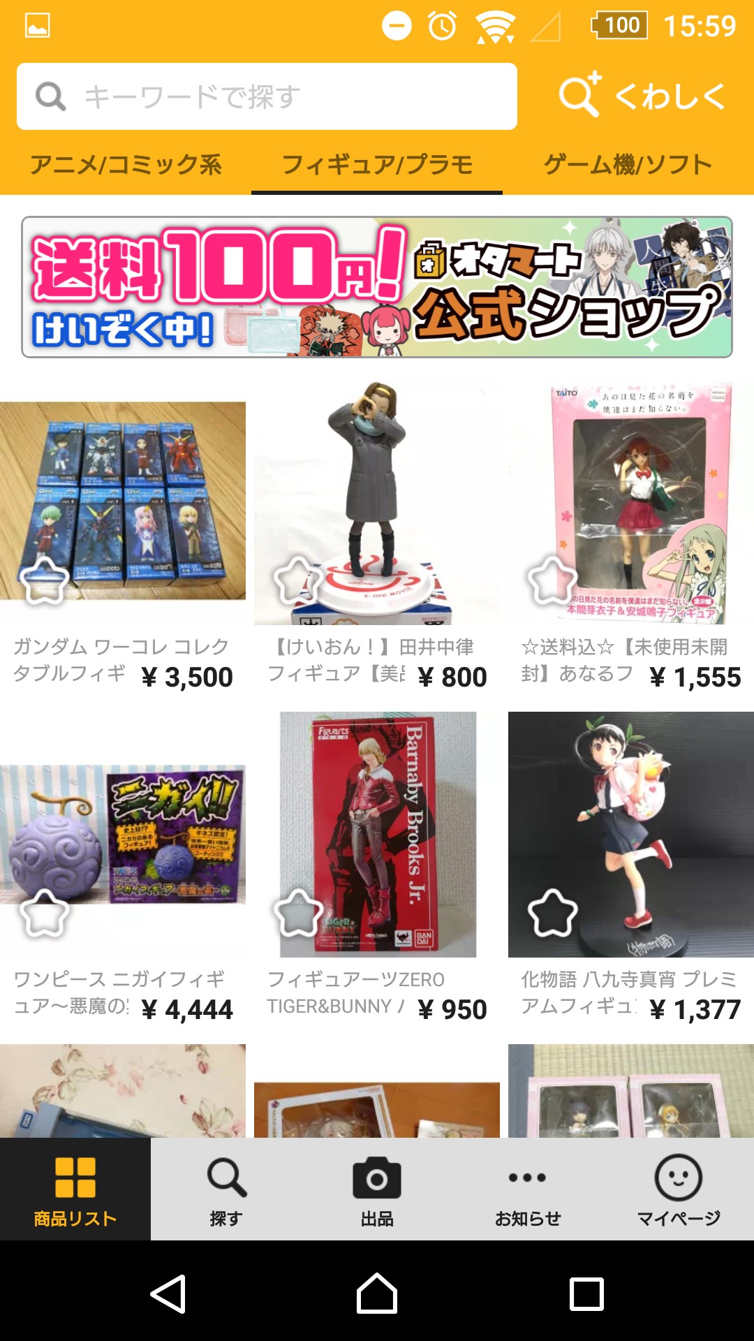 オタク系アイテムに特化したフリマアプリです。アニメ・漫画・ゲームに関する商品が多く、キャラクターグッズやDVD、同人誌などの取引を行えます。ユーザー間のコミュニケーション次第では、購入者のためだけに製作されるアイテムの取引も行われており、イラストやコスプレ衣装などの売買も楽しめます。