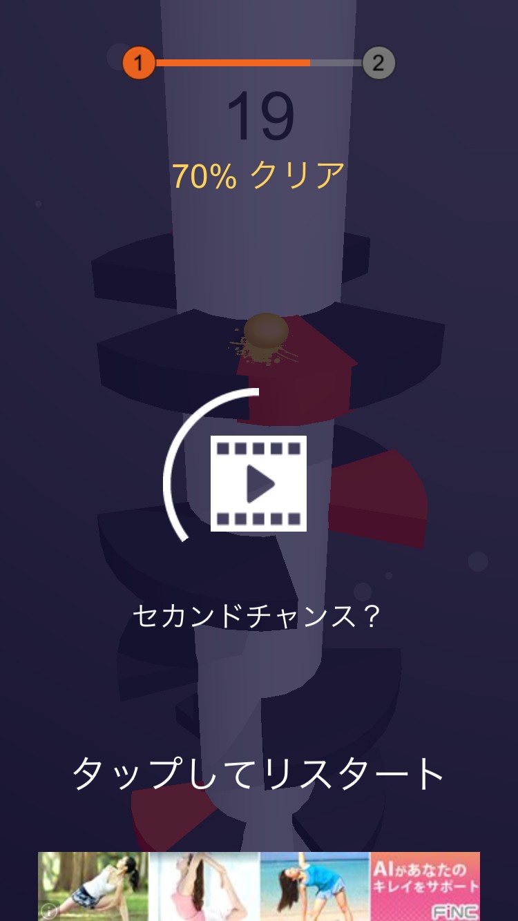 Helix Jumpは無料でしっかり楽しめるのが大きな特徴。App内課金で広告をなくすことができますが、ゲームの内容自体は完全無料。クリアするごとに新しいステージが現れますが、ステージが続く限り無料で制限なく遊ぶことができます。