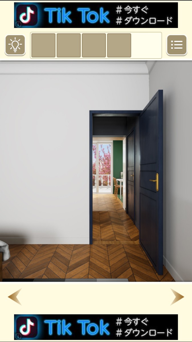 アプリを開いたら「スタート」ボタンを押してゲームを始めます。ゲームが始まるとアプリが操作の仕方を説明してくれます。アプリの基本操作は「タップ」、「ダブルタップ」のみです!簡単なので初心者でもすぐに慣れることができるでしょう。基本操作を理解したら部屋の気になるところをタップします。気になるところ以外にも、仕掛けがあるかもしれないので、念のためタップしてみてください。部屋を移動するときや向きを変えるときは、画面下にある矢印ボタンをタップします。